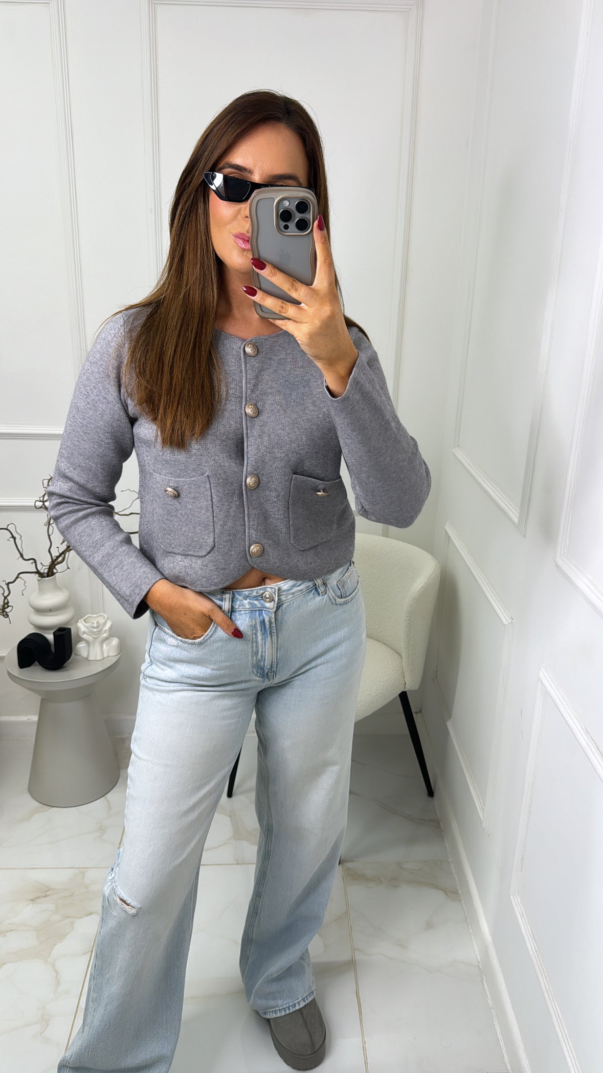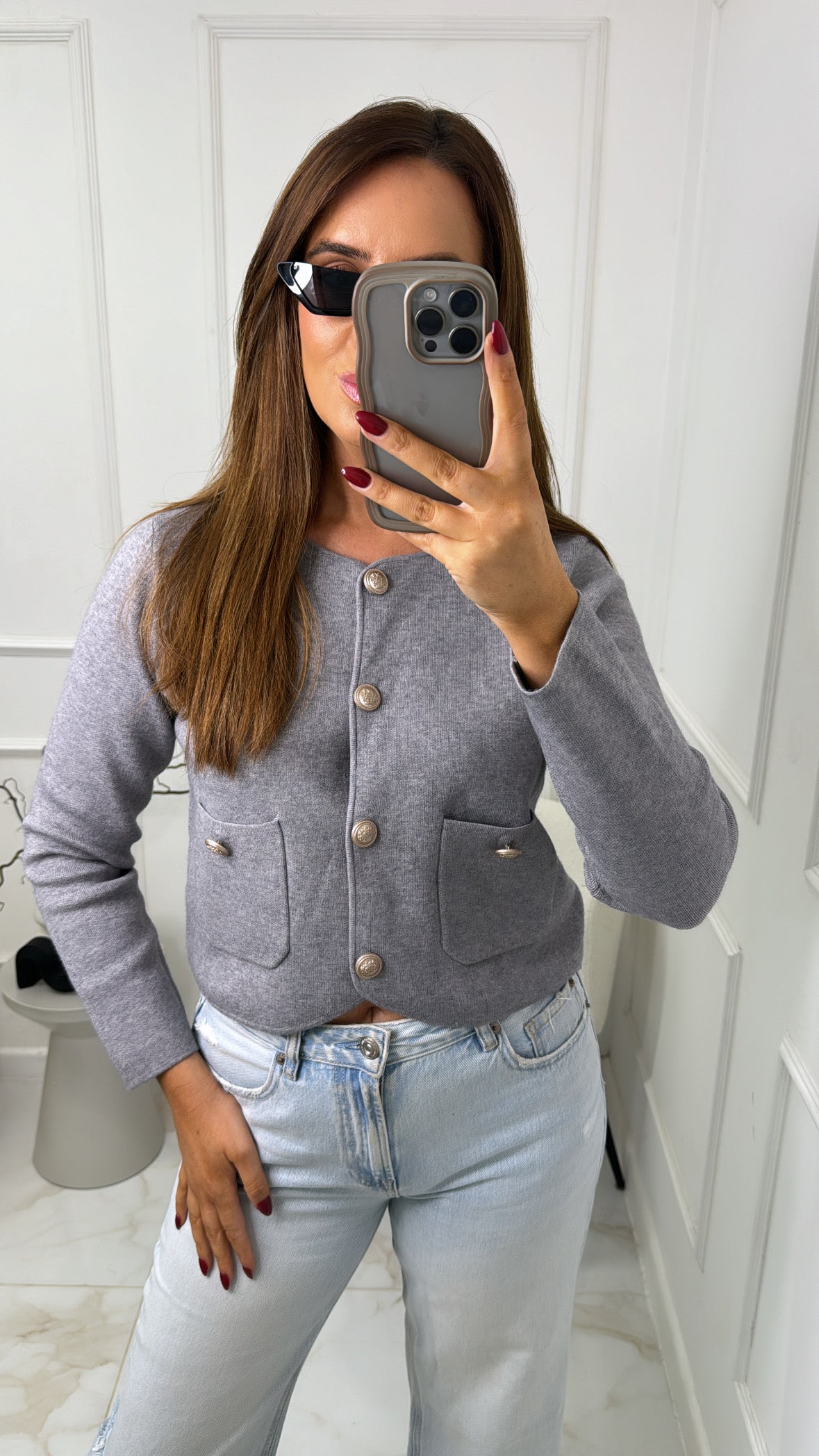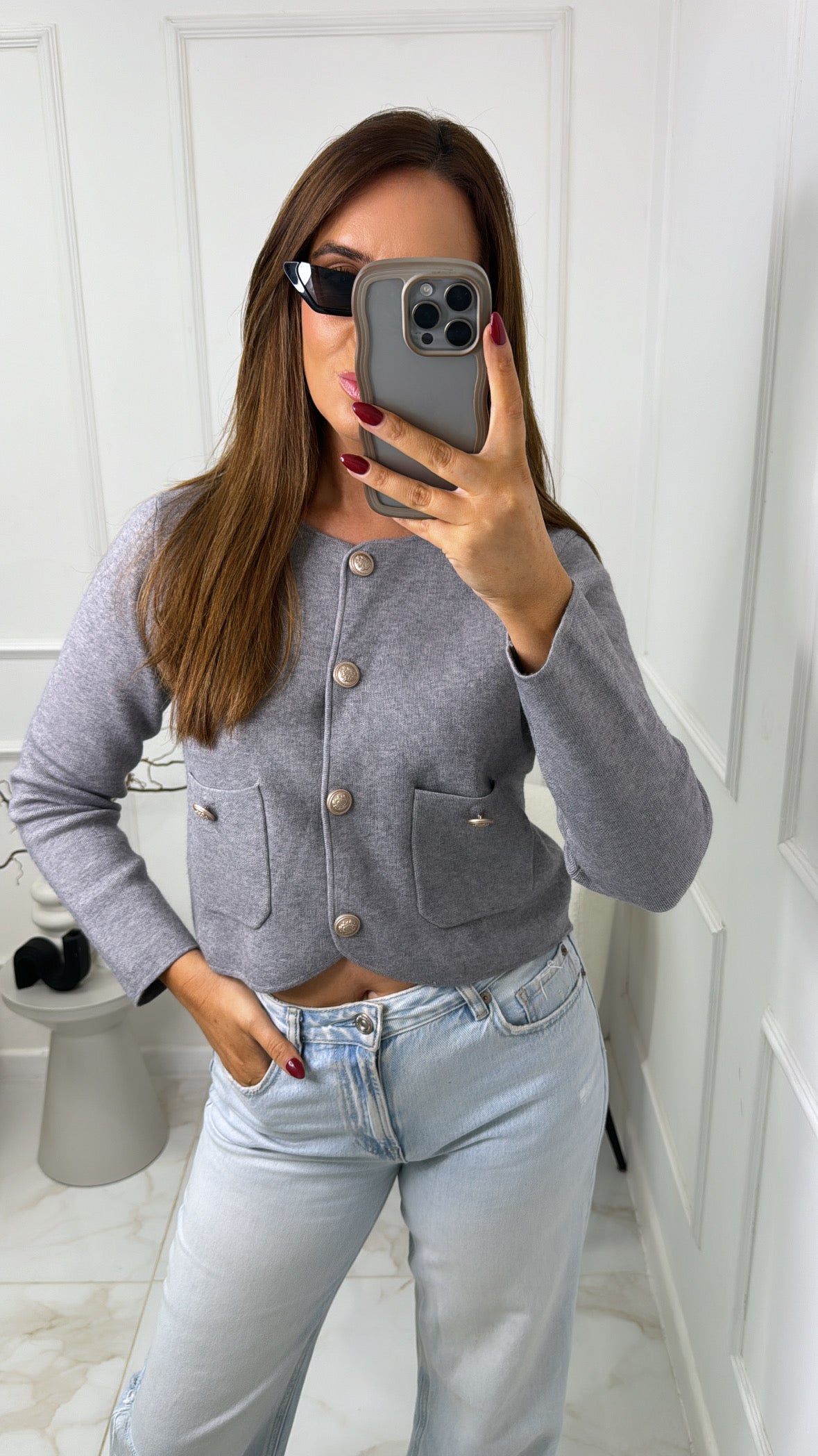 ISLA grey gold button cropped cardigan