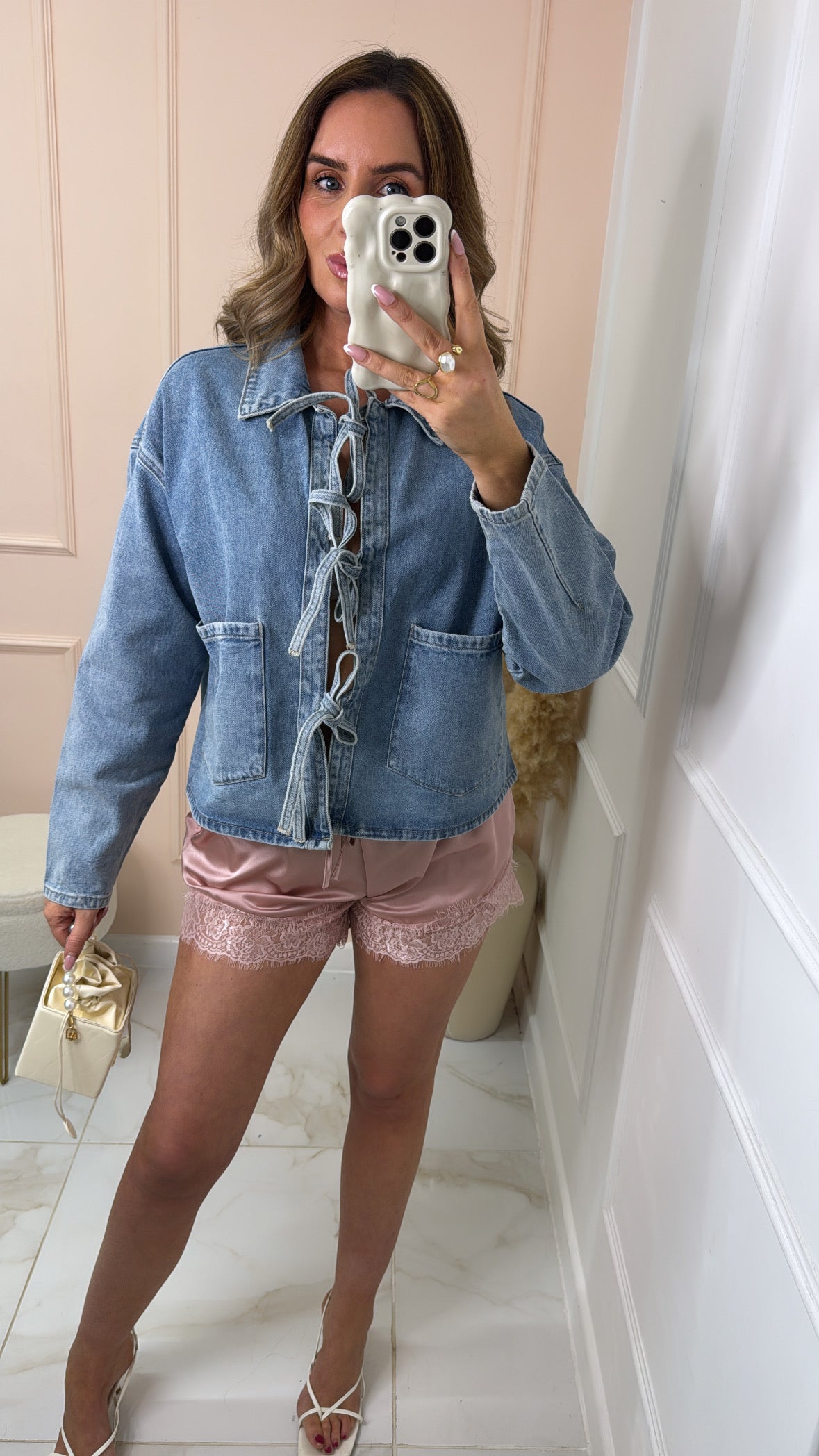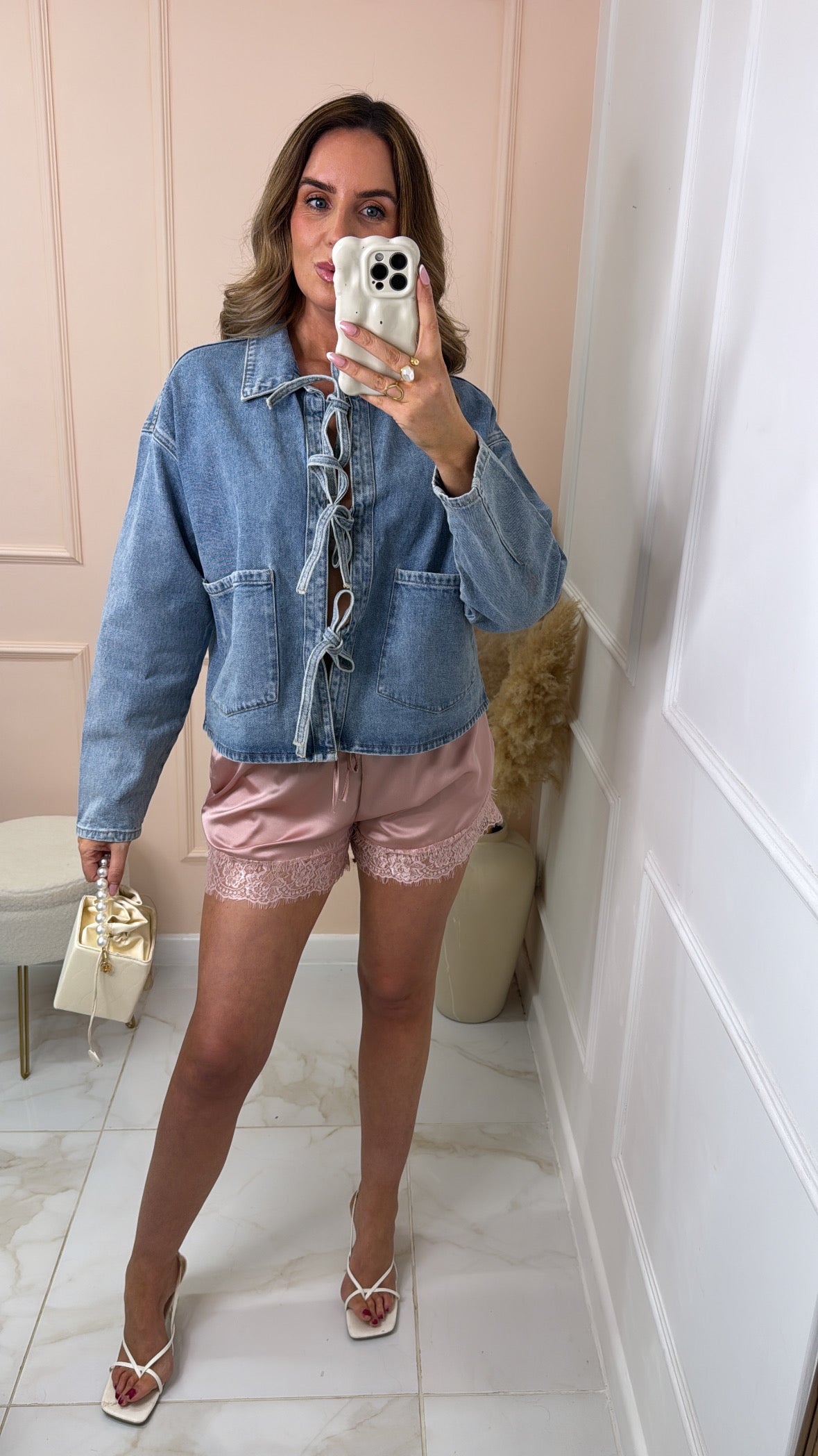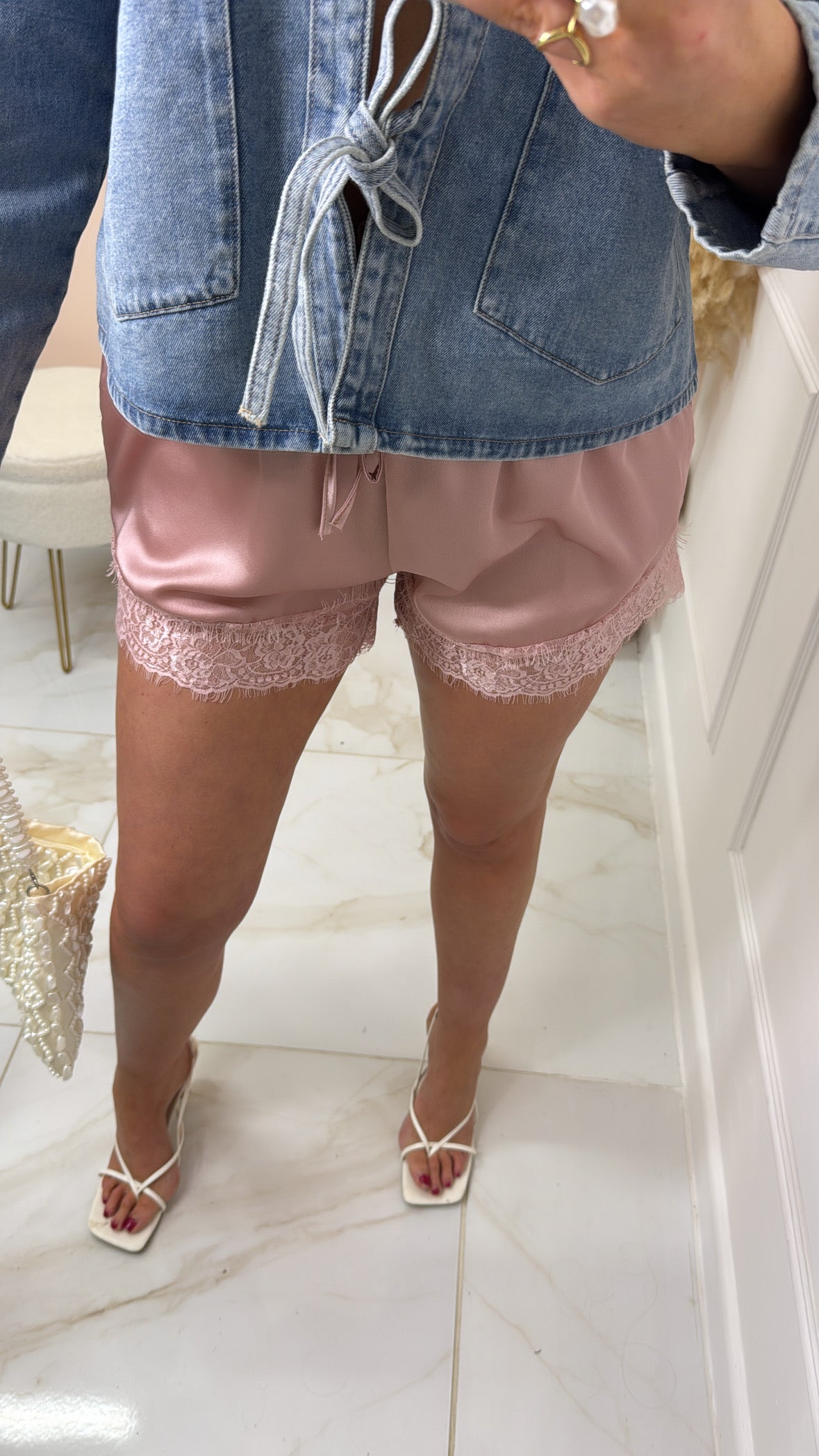 SIERRA rose pink lace trim shorts